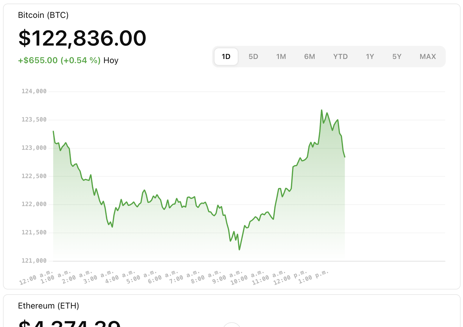Criptomonedas Precio en USD Precio estimado en MXNBitcoin (BTC)122,836 USD? 2,260,000 MXNEthereum (ETH)4,374.39 USD? 80,400 MXNBNB1,264.11 USD? 23,270 MXNXRP2.82 USD? 52 MXNUSDT? 1.00 USD? 18.40 MXNEstas criptomonedas representan pilares fundamentales en la economía digital. Su evolución y adopción continúan moldeando el futuro de las finanzas descentralizadas. Mantenerse informado sobre su desempeño es esencial para comprender las tendencias del mercado.