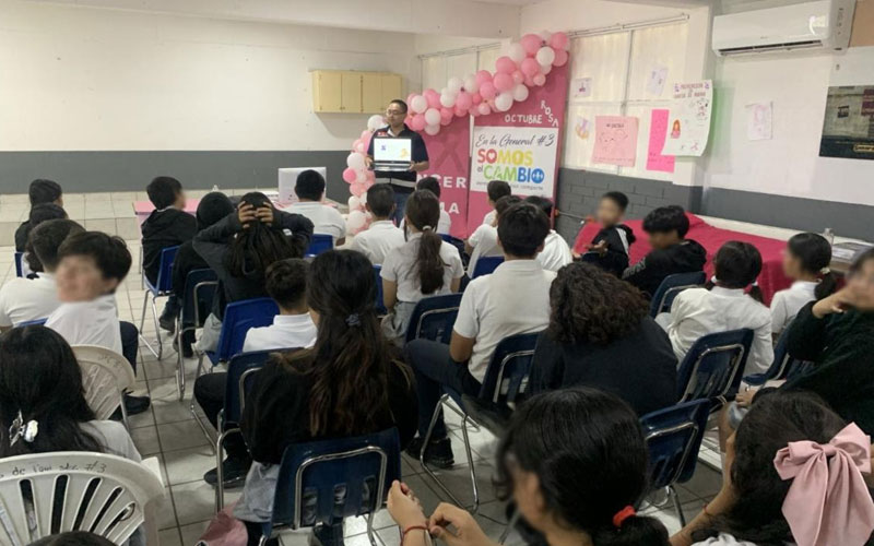 San Luis Río Colorado, Sonora, 23 de octubre de 2025.- Para evitar que las y los jóvenes de San Luis Río Colorado se involucren en la comisión de delitos como la violencia digital, el Gobierno de Sonora recorre planteles educativos para advertir sobre las consecuencias legales y los riesgos a los que se exponen.