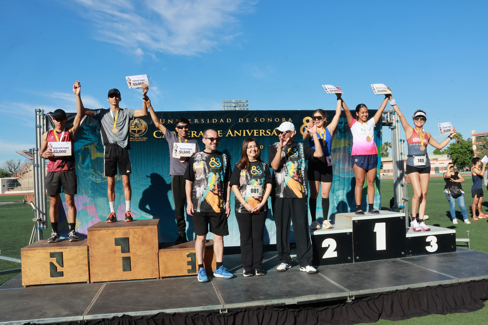 En la distancia competitiva de 5 kilómetros, que incluyó categorías desde los 15 años hasta los 70 y más, en ambas ramas, se otorgaron premios económicos a los tres primeros lugares absolutos: $3,000 pesos al primer lugar, $2,000 al segundo y $1,500 al tercero. Los ganadores por categoría también recibieron una medalla conmemorativa.
