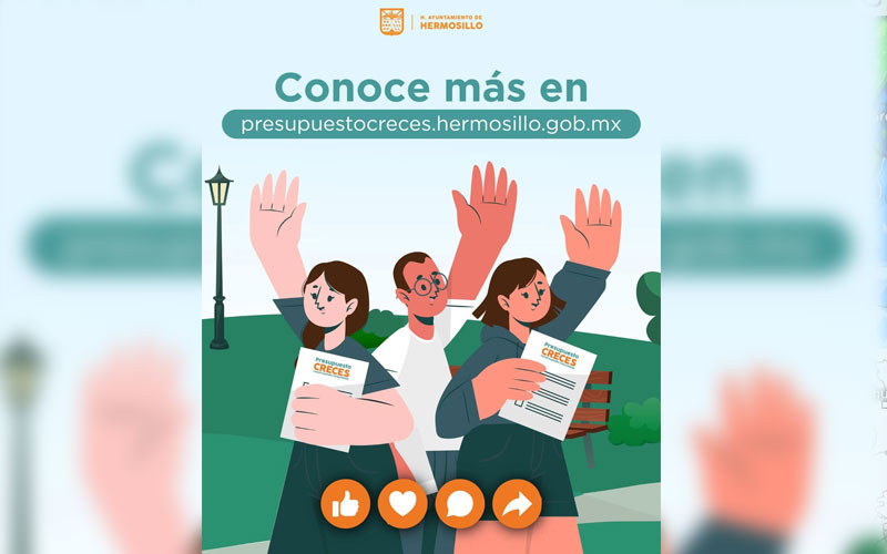 Las opciones disponibles de votación en línea son la página oficial: https://presupuestocreces.hermosillo.gob.mx/, el ChatBot “Hola” y WhatsApp, en el número 6621 55 01 00.