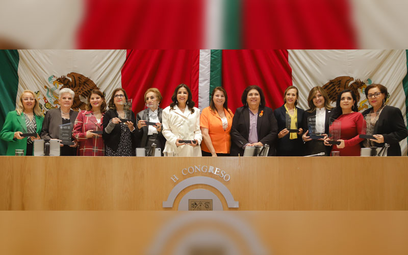 Acompañada de representantes de los poderes Ejecutivo y Judicial, la presidenta de la Mesa Directiva, diputada María Eduwiges Espinoza Tapia (Morena), expuso que el galardón constituye el reconocimiento que otorga el Congreso local a mujeres que, con su esfuerzo y compromiso, se han destacado en la defensa y promoción de los derechos de las mujeres.