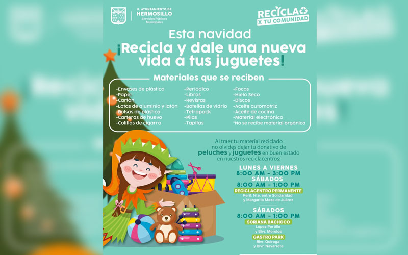 Invita Ayuntamiento de Hermosillo a donar juguetes con la campaña “Recicla y dale una nueva vida a tus juguetes”
