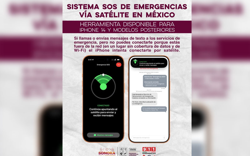 Este beneficio, recordó, se logró mediante el trabajo coordinado entre el Gobierno de Sonora y la empresa Apple, que desde el pasado mes puso en marcha este servicio disponible para usuarios de teléfonos celulares iPhone 14 y modelos posteriores.
