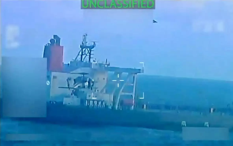 Agregó que el buque venezolano asaltado antier será llevado a un puerto de Estados Unidos y los barriles de petróleo que contenía serán confiscados mediante “un proceso legal”. Detalló que los tripulantes fueron interrogados ayer, pero no precisó si se encuentran detenidos o serán puestos en libertad al término del proceso de incautación. Tampoco precisó su número, ni nacionalidades.
