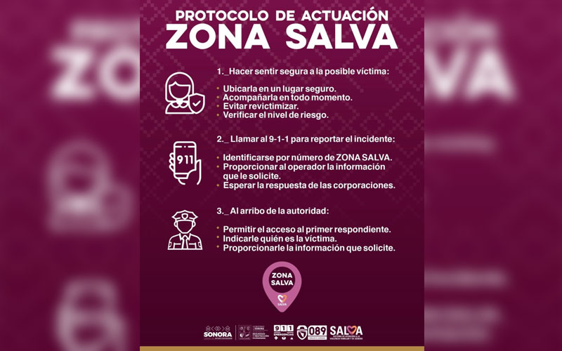 Hermosillo, Sonora; 14 de enero de 2026.– Comprometidos en prevenir que mujeres sean víctimas de violencia, la Secretaría de Seguridad y Protección Ciudadana (SSPSC) Sonora en colaboración con empresas e instituciones socialmente responsables, han implementado las Zonas SALVA, lugares seguros donde pueden ingresar y solicitar ayuda inmediata.