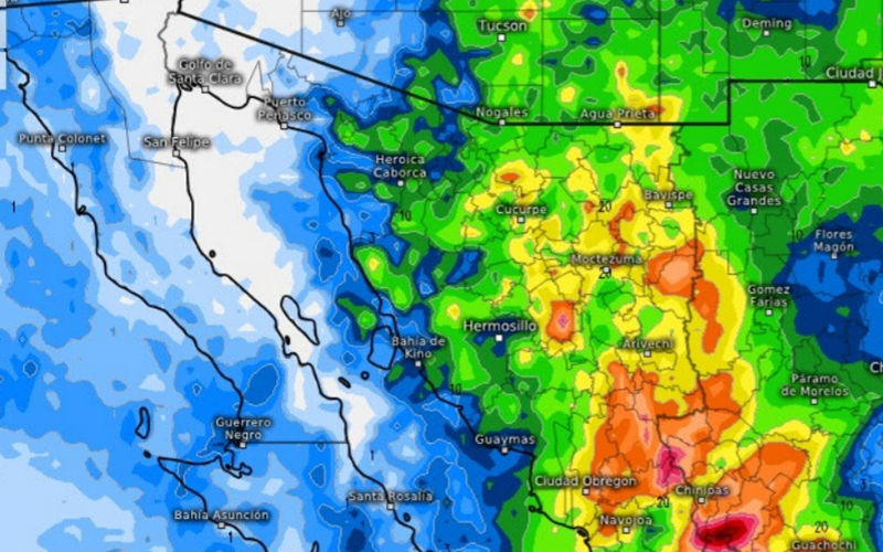 Asimismo, durante el sábado se asociará a un río atmosférico y continuará ocasionando lluvias puntuales fuertes, sobre todo el territorio estatal a excepción de la región noroeste de Sonora.