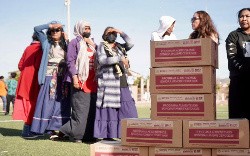 Durante la jornada se entregaron paquetes alimentarios de alto nivel nutricional con el objetivo de contribuir a una alimentación adecuada y apoyar la economía familiar de las personas que habitan esta comunidad, reafirmando el compromiso del Gobierno de Sonora con los pueblos originarios y el respeto a sus derechos.