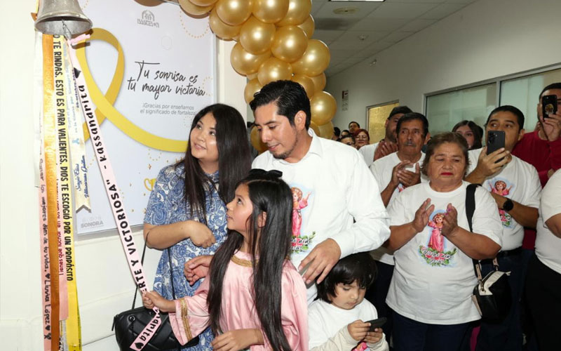 El evento culminó con aplausos, abrazos y algarabía de familiares, amigos y personal de Isssteson hacia Kassandra, quien después de un año en revisión periódica y más de cuatro años en tratamiento alcanzó la meta de tocar la campana en el área de pediatría del hospital.