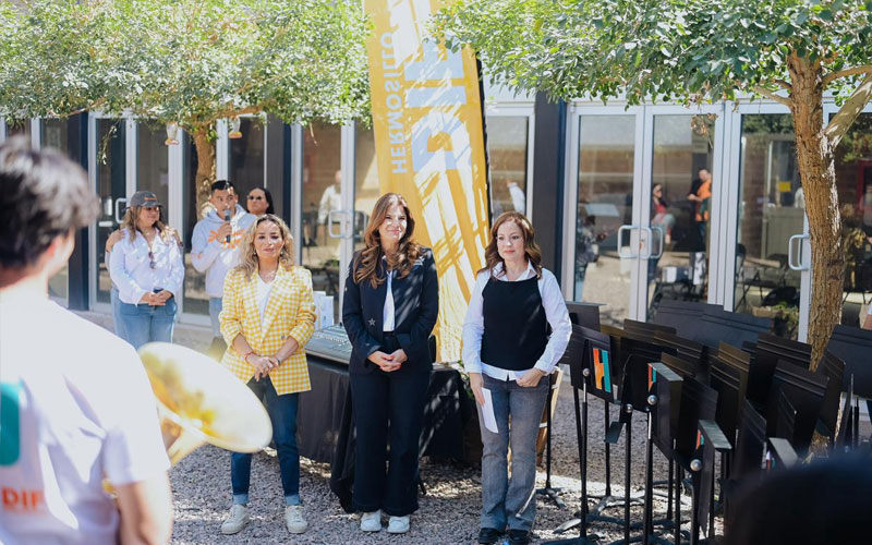 La Presidenta de DIF Hermosillo, junto a Madeleine Bonnafoux Alcaraz, directora general del Sistema DIF Hermosillo y Flor Ayala Robles Linares, Tesorera Municipal, atestiguó la entrega de 150 instrumentos musicales y accesorios, reafirmando el compromiso conjunto de fortalecer la cultura, el arte y el desarrollo del talento local.