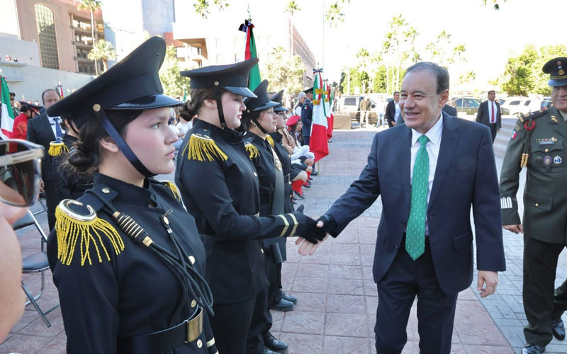En representación de las escuelas de educación básica de Sonora, la alumna Valeria Castrejón García, de la primaria General Abelardo L. Rodríguez dirigió el juramento a la bandera, acto que reafirmó el orgullo y respeto de las nuevas generaciones hacia los símbolos patrios.