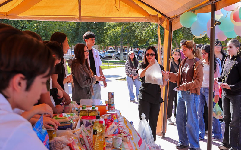 Durante la jornada, realizada en la Plaza del Estudiante, se estuvieron recibiendo donativos por parte de la comunidad universitaria y de la sociedad en general, consistentes en alimentos no perecederos como frijol, lentejas, arroz, pastas, artículos de limpieza, entre otros productos.