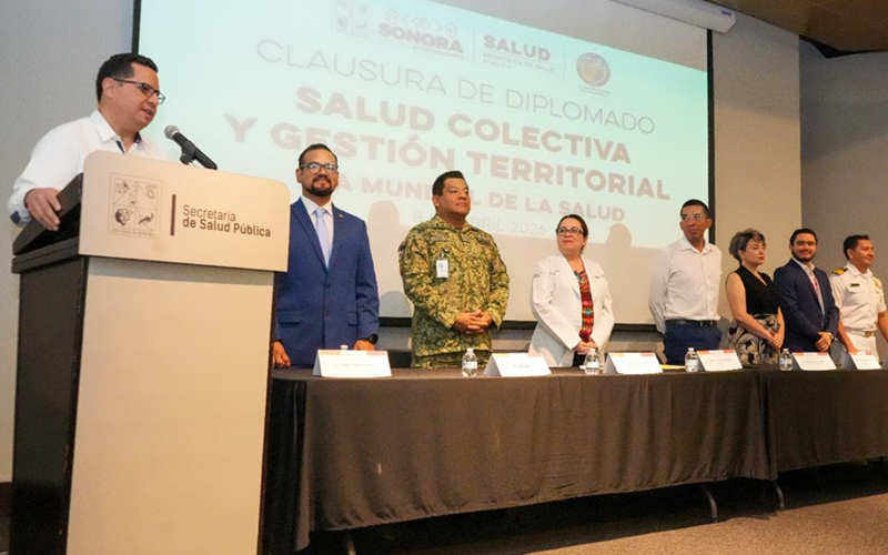 Hermosillo, Sonora; 8 de abril de 2026.- El Gobierno de Sonora, a través de la Secretaría de Salud Pública (SSP), conmemoró el Día Mundial de la Salud y realizó la clausura del Diplomado en Salud Colectiva y Gestión Territorial, un espacio de formación orientado a fortalecer la prevención y el trabajo en la región. El evento se llevó a cabo en MUSAS, con la participación de autoridades del sector salud, instituciones académicas y personal operativo.