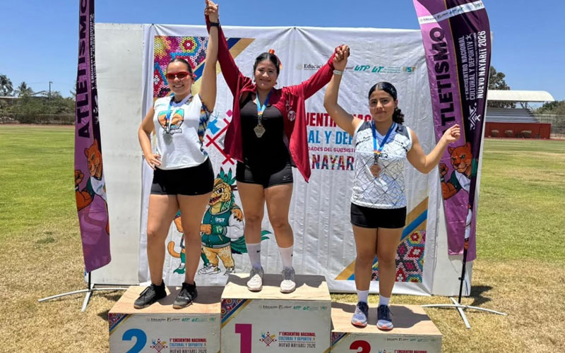 Por su parte, Sinaí Sarahy Ruiz Ríos, quien actualmente cursa la carrera de Paramédico, obtuvo el oro en lanzamiento de bala, con el apoyo del docente Manuel Valdez.