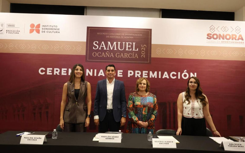 Hermosillo, Sonora, 1 de octubre de 2025.- El Gobierno de Sonora, a través de la Secretaría de Educación y Cultura (SEC) y el Instituto Sonorense de Cultura (ISC), llevó a cabo la ceremonia de premiación del Segundo Concurso de Investigación de Historia de Sonora “Samuel Ocaña García” 2025, un certamen que distingue el trabajo de quienes dedican su labor a fortalecer la memoria histórica y la identidad de nuestro estado.