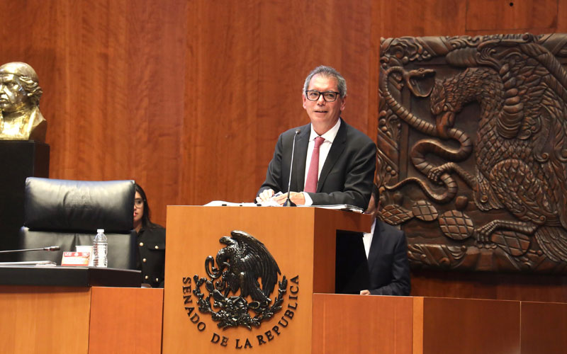 Los dichos del funcionario arrancaron aplausos del grupo mayoritario, al igual que cuando respondió a la priísta Carolina Viggiano el señalamiento de que es un hombre que se dice de izquierda, pero en realidad “es un mal neoliberal”.