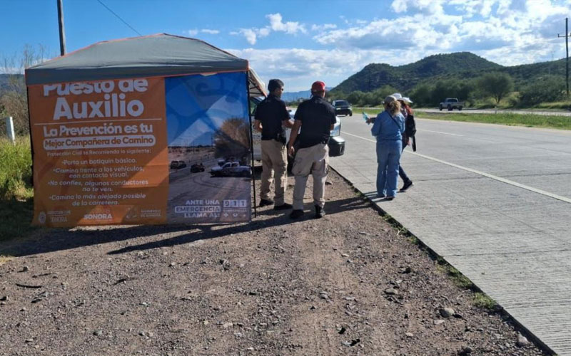 Armando Castañeda Sánchez, coordinador de Protección Civil Sonora, indicó que el llamado es a usar chalecos reflejantes, viajar de día y caminar en fila, evitando hacerlo por la orilla de la carretera para mayor seguridad.