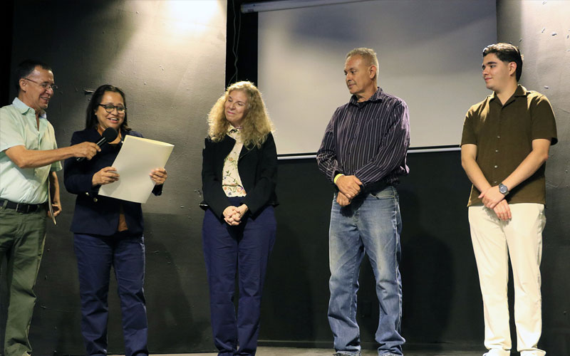 La jefa del Departamento de Bellas Artes, Flor del Carmen Herrera Navarro, agradeció la asistencia del público y de los familiares del homenajeado, y destacó que la ceremonia permitió apreciar una parte de la obra literaria escrita por el docente universitario, a través de una lectura dramatizada de “Ciudad Nocturna”, que fue interpretada por egresados de la Academia de Arte Dramático.
