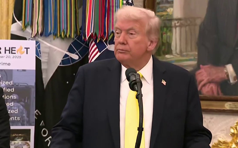 Trump destacó que gracias a los ataques ya casi no hay barcos en el Golfo de México (que él llama Golfo de América). “Ni siquiera pesqueros (…) No quiero afectar la industria pesquera, pero ha sido muy eficaz”, comentó y aseguró que las drogas que llegan por mar son 5 por ciento qde los que arribaban hace un año. “Así que ahora llegan por tierra e incluso la tierra está preocupada porque les dije que eso será lo siguiente (…) la tierra será lo siguiente”.