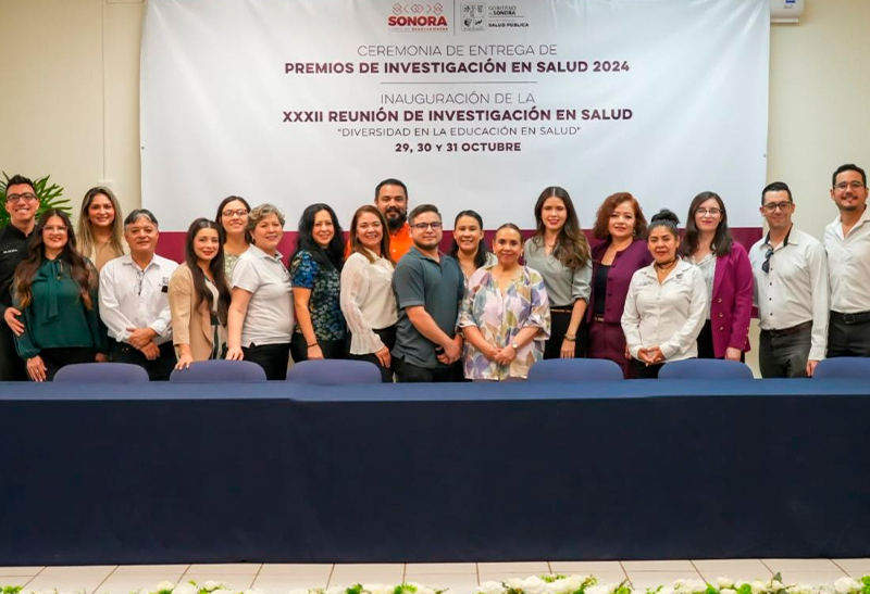 Hermosillo, Sonora; 29 de octubre de 2025.– Con el fin de fomentar la formación, la capacitación y la interacción entre investigadores y estudiantes de distintas instituciones de educación superior en temas de salud, el Gobierno de Sonora, a través de la Secretaría de Salud, llevó a cabo la Ceremonia de Entrega de Premios de Investigación en Salud 2024, en el marco de la XXXII Reunión de Investigación en Salud.
