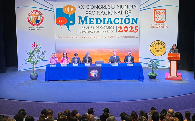Hermosillo, Sonora, 30 de octubre de 2025.- El Congreso de Mediación, en su XX edición mundial y XXV nacional, dio inicio este jueves en la Universidad de Sonora, con la inauguración de los trabajos que reúnen en el teatro Emiliana de Zubeldía a expertos nacionales y extranjeros.