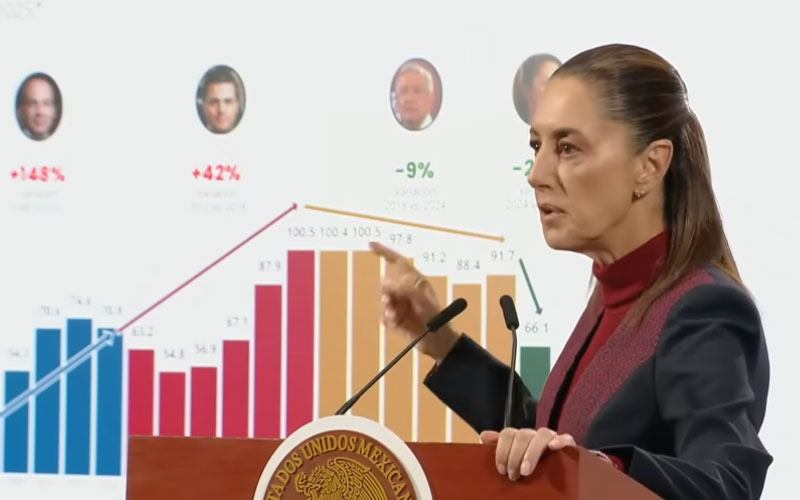 Sheinbaum señaló que, de acuerdo con los registros oficiales, los homicidios dolosos se redujeron 9 por ciento durante el sexenio de López Obrador y 28 por ciento en el primer año de su propio gobierno, mientras que entre septiembre de 2024 y octubre de 2025 la reducción llegó a 37 por ciento. “Por más críticas que haya desde la oposición o desde fuera, lo cierto es que los resultados están ahí, y vamos a dar más”, dijo.