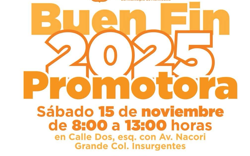 Hermosillo, Sonora; 13 de noviembre, 2025.- Como parte de las promociones del Buen Fin que el Gobierno Municipal ofrece, Promotora Inmobiliaria del Municipio de Hermosillo ofrecerá atractivos descuentos este sábado 15 de noviembre de 8 de la mañana a 1 de la tarde.