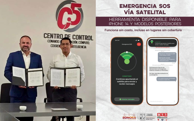 Hermosillo, Sonora; 17 de noviembre de 2025.- Como parte de la innovación tecnológica al servicio de la ciudadanía la línea 9-1-1 Sonora atendió con éxito la primera llamada generada desde el servicio “Emergencia SOS” vía satelital que ofrece la empresa APPLE a usuarios de teléfonos celulares iPhone 14 y modelos posteriores.