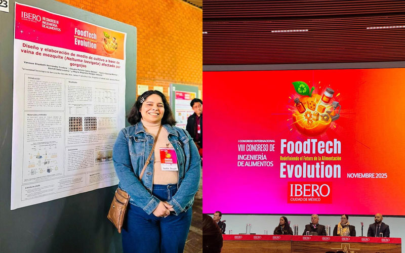 Ciudad de México, 25 de noviembre de 2025.- Con la presentación de proyectos sustentables, con un enfoque innovador en el aprovechamiento de recursos regionales, docentes de la Universidad Tecnológica de San Luis Río Colorado (Utslrc) participaron en el VIII Congreso Internacional de Ingeniería en Alimentos, organizado en la Universidad Iberoamericana.