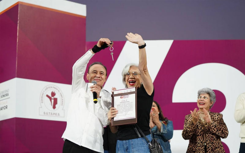 En el marco de la celebración, el gobernador Alfonso Durazo realizó la rifa de regalos y la entrega de casas y automóviles.