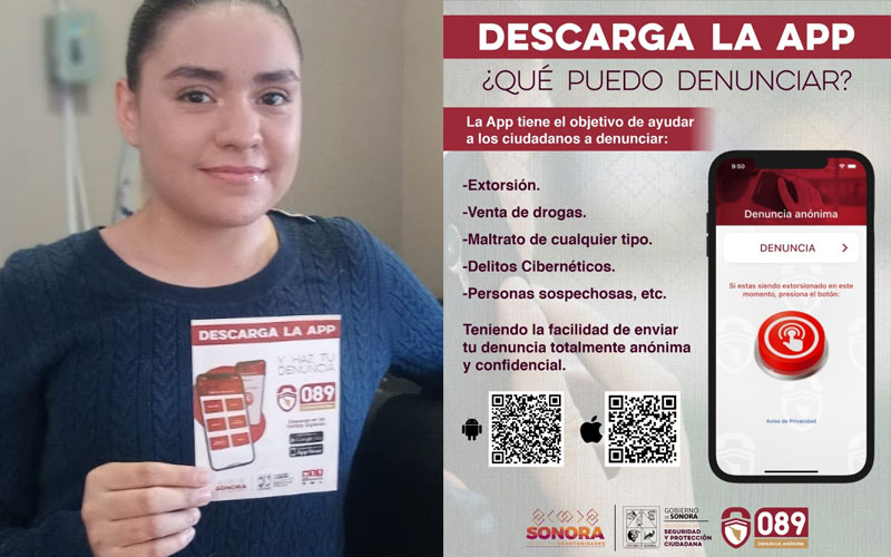La app 089 Denuncia Anónima Sonora es accesible, gratuita y de fácil descarga desde las tiendas de aplicaciones de preferencia o mediante el escaneo del código QR.