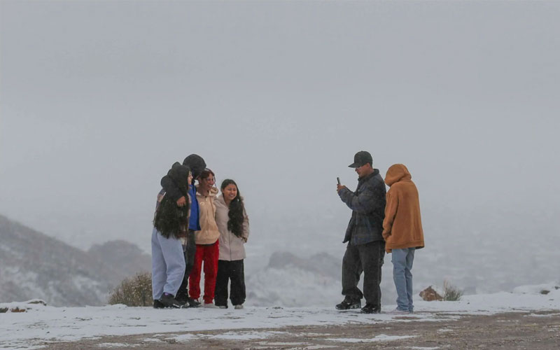 En Juárez, la temperatura fue de 0.5 grados con sensación térmica de -3 grados, debido a vientos hasta de 20 kilómetros y precipitaciones en forma de lluvia, aguanieve y nieve en distintos sectores de la localidad.