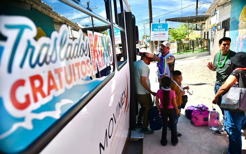 Familias aprovechan transporte a Bahía de Kino a cambio de apoyo solidario en Hermosillo
