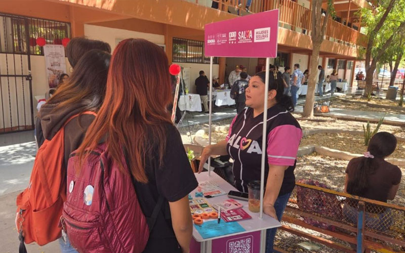 Hermosillo, Sonora; 15 de abril de 2026.- Mediante la cooperación interinstitucional de las autoridades de la Universidad de Sonora, el Sistema SALVA participa semanalmente en los módulos itinerantes de salud para visualizar entre el estudiantado los programas y servicios que brinda la Secretaría de Seguridad y Protección Ciudadana (SSPC) para prevenir, atender y dar seguimiento a casos de violencia familiar y de género.