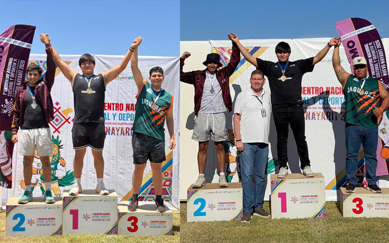 El joven se coronó campeón nacional en lanzamiento de bala con una marca de 16.02 metros y, posteriormente, reafirmó su dominio al obtener la segunda medalla de oro en lanzamiento de disco, con un registro de 44.68 metros, en la pista de la unidad deportiva de Bahía de Banderas.
