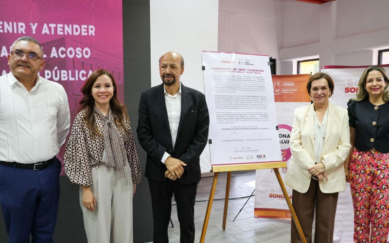Asimismo, se llevó a cabo la firma del Pronunciamiento de Cero Tolerancia al Hostigamiento y Acoso Sexual en la Administración Pública Estatal, en el Instituto Tecnológico de Agua Prieta (ITAP), con la participación de la secretaria de Anticorrupción y Buen Gobierno, María Dolores del Río Sánchez; el alcalde de Agua Prieta, José Manuel Quijada; la directora general del ITAP, Mayra Karina Gálvez Díaz; y la coordinadora del Sistema SALVA, Zulema Boneo, en representación de la Secretaría de Seguridad Pública y Protección Ciudadana.